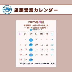 令和7年9月営業カレンダー